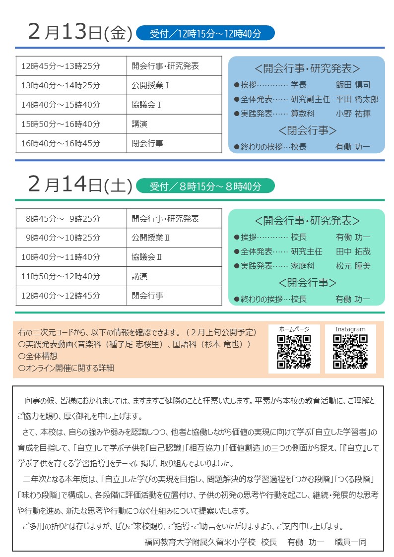 2月の教育研究発表会では、子供たちが自ら問いを見いだし、協働しながら考えや表現をつくりあげ、学習を通して変容した自分を価値付けていく姿をご覧いただきたいと考えております。